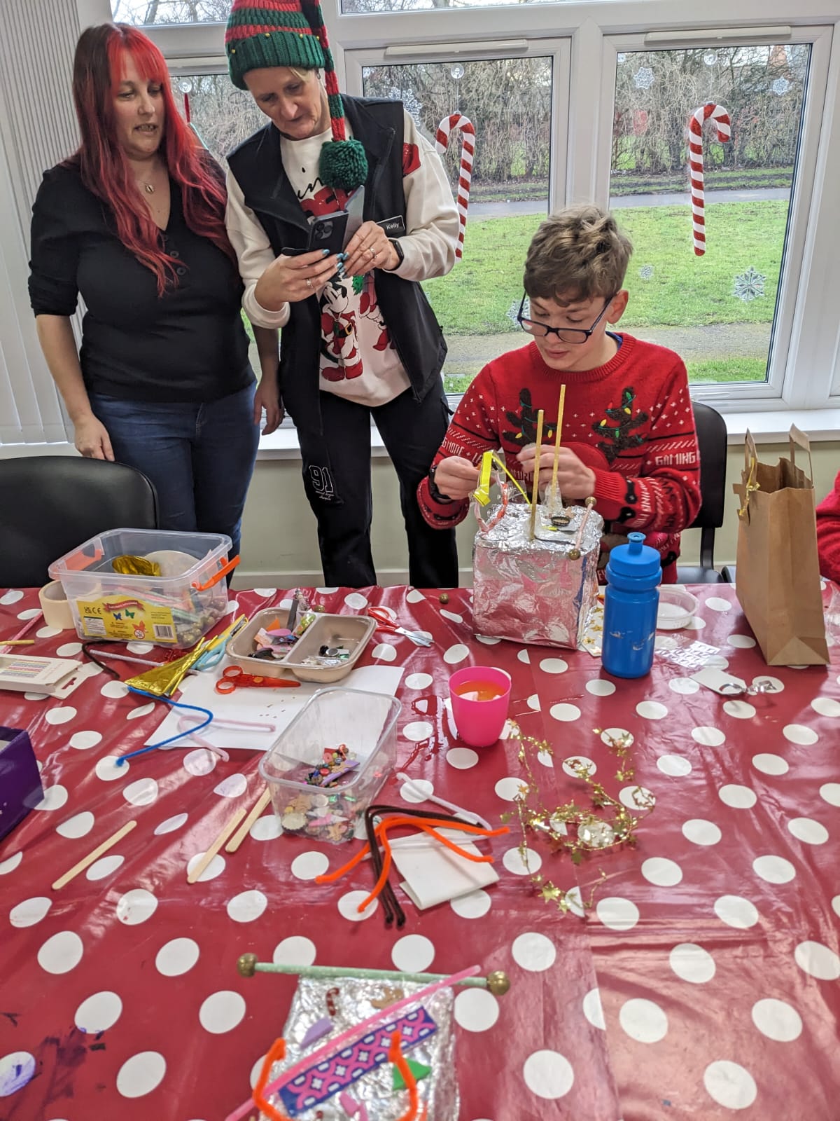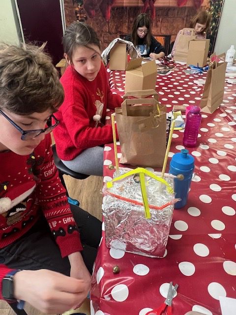 Hosted by local food charity Little Chef Big Chef CIC, we ran a small community workshop where local families who use the charity could build ‘satnav for Santa’! We wove a narrative that the North Pole Team had commissioned Durham University and NET Park (County Durham science park) to develop some new tech to give them the edge this year. NET Park needed local children’s help to make Christmas versions of ‘CubeSats’ – next generation micro satellites that are manufactured by companies based there.